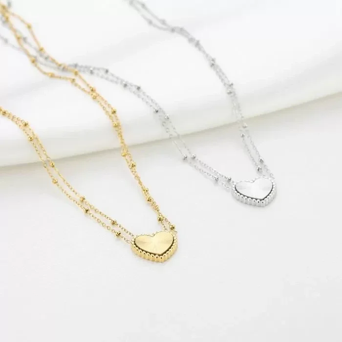 - Detail: Twee delicate kettinkjes met een hartje in het midden voor een speelse en liefdevolle look.
