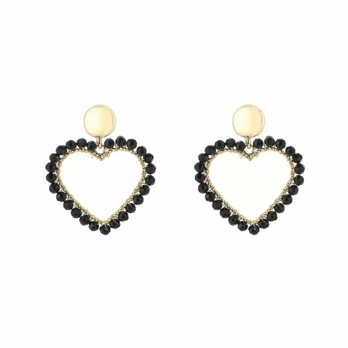 Ibiza kraal oorbellen | Hartje zwart