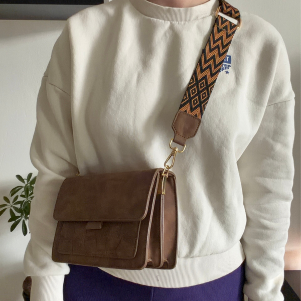 Crossbody tas Croco | Donkerbruin suede