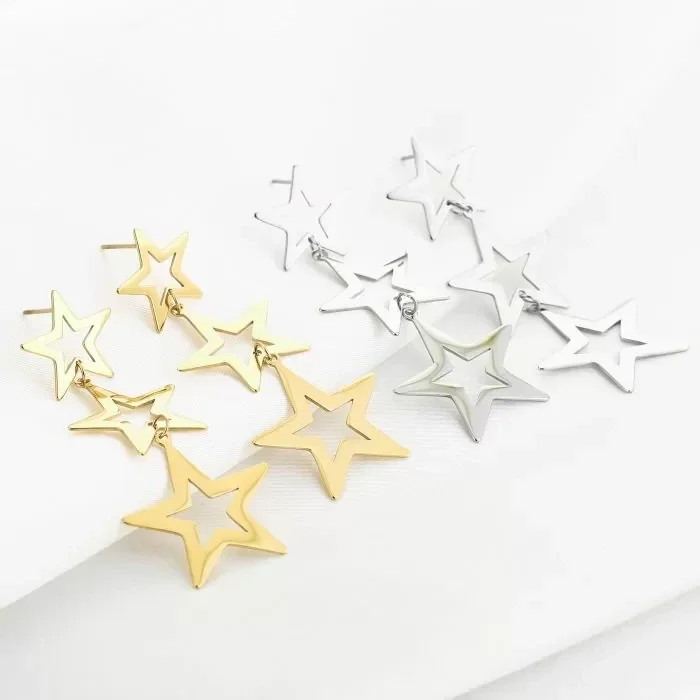 Lange ster oorbellen | Goud