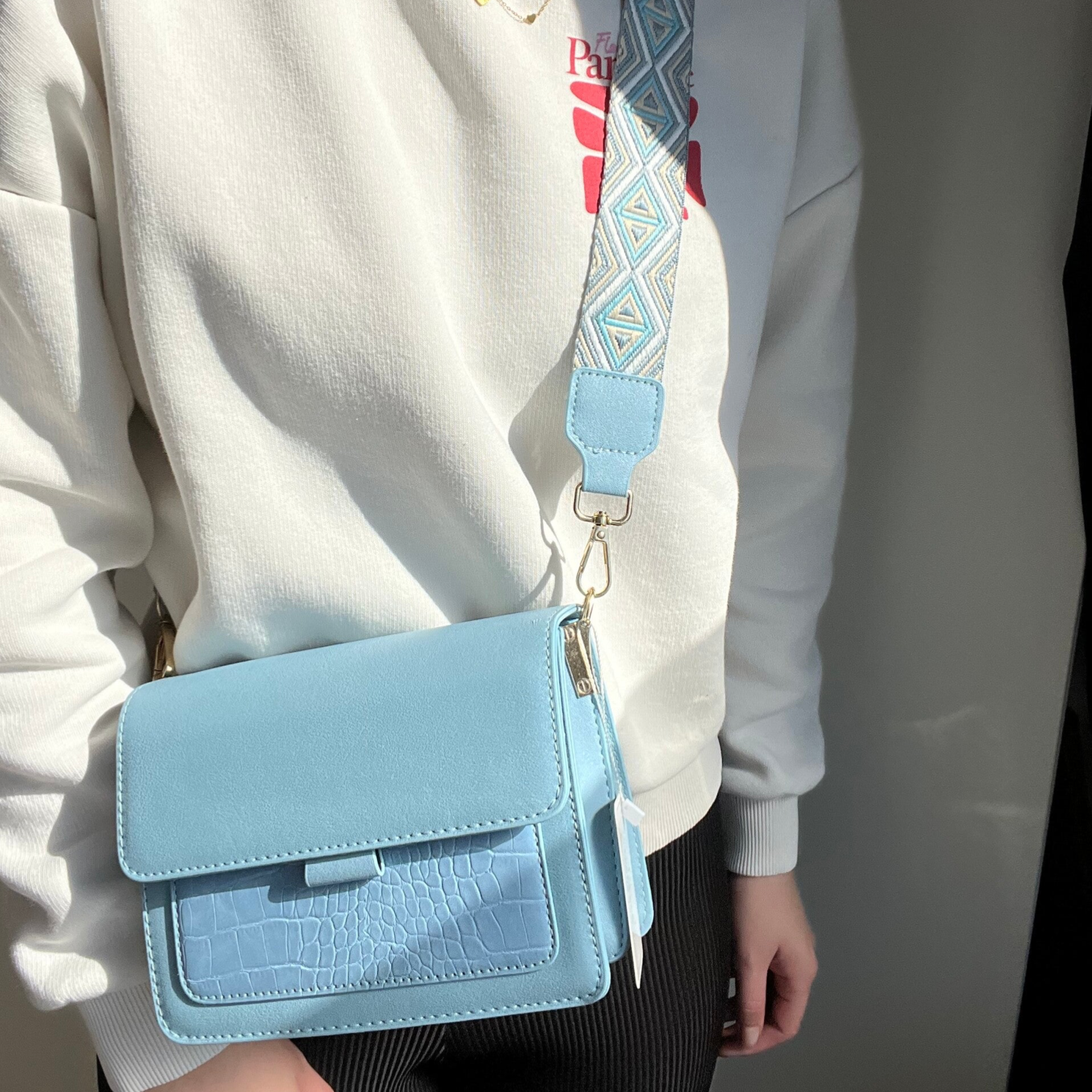 • Handig voorvakje met crocoprint voor extra opbergruimte