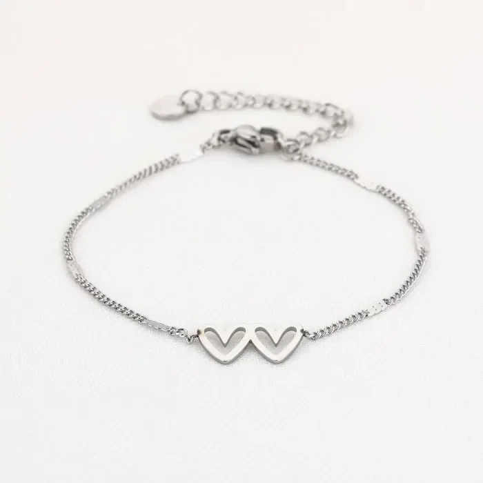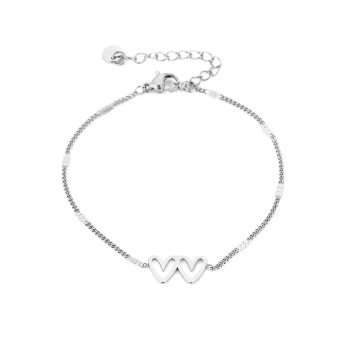 Duo hartjes armband | Zilver